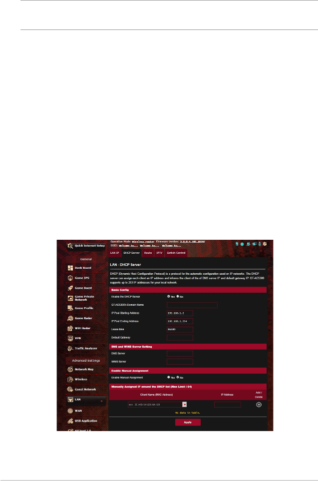 Advanced Settings (Gelişmiş Ayarlar) > LAN > DHCP Server