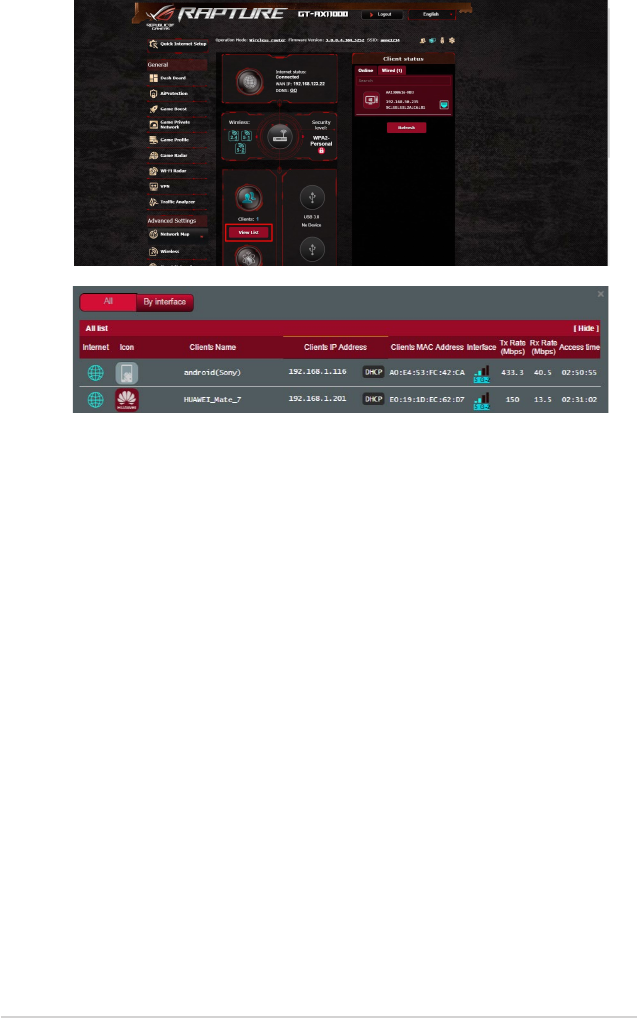 Durumu) simgesinden ağ istemcileriniz hakkındaki bilgileri