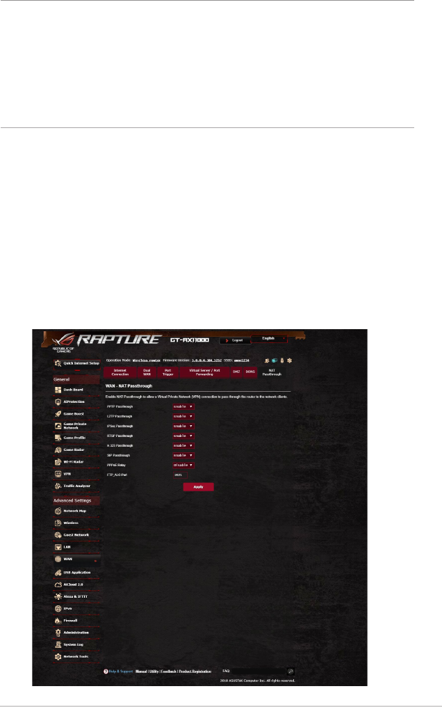 Passthrough (NAT Geçişi) sekmesine gidin. Tamamladığınızda,
