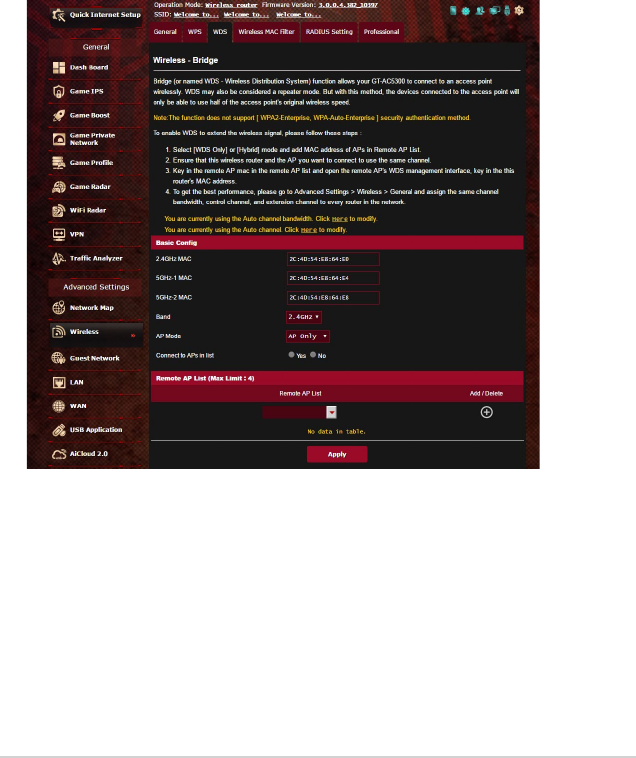 (Avancerade inställningar) > Wireless (Trådlös) > WDS.