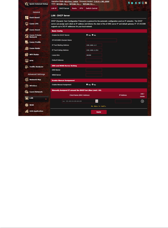 (Avancerade inställningar) > LAN > DHCP Server.