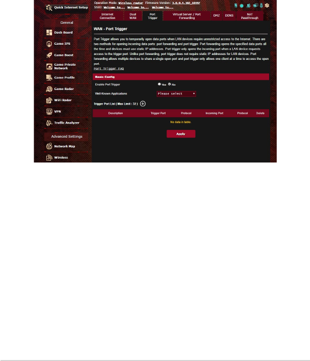 2. I fältet Enable Port Trigger (Aktivera portutlösning), markera