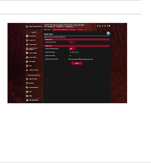 För att starta Media Servers inställningssida, gå till iken Gå till