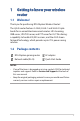 Table of contents 1 1.1 1.2 1.3 1.4 1.5 2 2.1 Getting to know your wireless router Welcome!.........................................................................................7 Package contents..........................................................................7 Your wireless router......................................................................8 Positioning your router............................................................ 10 Setup Requirements.......................................