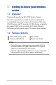 Table of contents 1 1.1 1.2 1.3 1.4 1.5 2 2.1 Getting to know your wireless router Welcome!.........................................................................................7 Package contents..........................................................................7 Your wireless router......................................................................8 Positioning your router............................................................ 10 Setup Requirements.......................................
