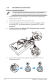 1.3 Asamblarea monitorului Pentru a asambla monitorul: • În timpul asamblării braţului/bazei monitorului, vă recomandăm să păstraţi monitorul în interiorul ambalajului EPS (polistiren expandat). 1. Aliniaţi orificiul de şurub al braţului cu şurubul inclus pe bază. Apoi introduceţi baza în braţ. 2. Fixaţi baza la braţ prin fixarea şurubului inclus. 3. Aliniaţi marcajele triunghi de pe baza monitorului şi de pe capacul de proiecţie LED. Apoi ataşaţi capacul de proiecţie LED la baza monitorului. 4.