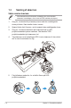 1.3 Samling af skærmen Sådan samles skærmen: • Når skærmens arm/fod samles, anbefales det at du beholder skærmen i emballagen, der er lavet af EPS (udvidet polystyren). 1. Sørg for, at skruehullet på armen passer med den medfølgende skrue på foden. Sæt derefter foden i armen. 2. Spænd foden fast til armen, ved at spænde den medfølgende skrue. 3. Sørg for, at trekant-mærkerne på skærmens fod og LEDprojektionsdækslet passer sammen. Sæt derefter LEDprojektionsdækslet på skærmens fod. 4.