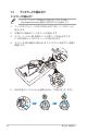 ディスプレイの組み立て 1.3 ディスプレイの組み立て: • モニターアーム/ベースを組み立てる際には、モニターを EPS (Expanded Polystyrene) 梱包内に保持することをお勧めします。 1. アームのネジ穴とベースのネジを合わせます。次に、ベースをアームに 挿入します。 2. 付属のネジを締めてベースをアームに固定します。 3. モニターベースと LED 投影カバーの三角マークを合わせます。次 に、LED 投影カバーをモニターベースに取り付けます。 4. モニターを EPS 梱包から取り出します。ディスプレイを見やすい角度に 調整します。 2 1 3 5.