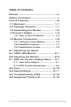 Table of Contents Notices................................................................iv Safety information.............................................v Care & Cleaning.............................................. viii 1.1 Welcome!................................................. 1-1 1.2 Package Contents............................... 1-1 1.3 Assembling the Monitor..................... 1-2 1.4 Connect Cables..................................... 1-4 1.4.1 Rear of the LCD Monitor........................