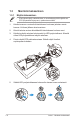 1.3 Monitorin kokoaminen 1.3.1 Näytön kokoaminen: • Kun kokoat näytön vartta/alustaa, on suositeltavaa pitää näyttöä sen EPS (Expanded Polystyrene) -pakkauksen sisällä. 1. Kohdista varren ruuvinreikä toimitukseen kuuluvan jalustan ruuvin kanssa. Liitä sen jälkeen alusta varteen. 2. Kiinnitä alusta varteen kiinnittämällä toimitukseen kuuluva ruuvi. 3. Kohdista näytön alustan kolmiomerkit ja LED-projisointikansi. Kiinnitä sitten LED-projisointikansi näytön alustaan. 4.