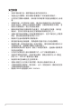注意事項 聯邦通訊委員會 (FCC) 聲明 本裝置符合 FCC 條款第 15 部份的規定。 操作程序受限於下列兩項條件: • 本裝置不會造成有害干擾。 • 本裝置須能承受任何可接收的干擾,包括可能導致意外操作的干擾。 本設備經測試符合 FCC 條款第 15 部份關於 B 類數位裝置的規定。 這些限 制之主要目的乃針對在住宅區內安裝裝置時,提供有害干擾的合理保護。 本設備會產生、使用並放射無線射頻能量,如未根據本指示方法安裝和使用 本設備,可能會對無線電通訊造成有害干擾。 然而,我們無法保證在特定 環境下安裝此設備不會造成任何干擾。 若本設備確實對無線電或電視接收 造成不良干擾(請開關設備加以確認),您可採取以下方式改善干擾情形: • 重新調整收訊天線的方向或位置。 • 將設備與接收器之間的距離加大。 • 將設備與接收器插至使用不同電路的電源插座。 • 向有經驗的無線電 電視技術人員尋求協助。 連接螢幕與顯示卡需使用屏蔽纜線以確保遵循 FCC 規範。 未經負 責遵循方明確核准變更或修改本機可能造成使用者操作本設備的權 限失效。 加拿大通訊部聲明 根據加拿大通訊部於無線電干擾法規中針對數位