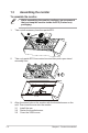 1.3 Assembling the monitor To assemble the monitor: • While assembling the monitor arm/base, we recommend that you keep the monitor inside its EPS (Carton box) packaging. 1. Take out all accessory from the upside EPS. 2. Take out upside EPS from carton box and then push open stand assembly hole. 1 2 3. 1-2 Align the screw hole on the monitor with the bundled screw on the arm. Then insert the arm into the monitor. 3.1 Install the arm. 3.2 Fasten the bundled screw. 3.2 Cover the VESA cover.