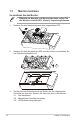 1.3 Monitor montieren So montieren Sie den Monitor: • Während der Montage von Monitorarm/-basis sollten Sie den Monitor in seiner EPS- (Karton) Verpackung belassen. 1. Nehmen Sie alle Zubehörteile aus dem umgekehrten EPS. 2. Nehmen Sie den umgekehrten EPS aus dem Karton und drücken Sie das Ständermontageloch auf. 1 2 3. 1-2 Richten Sie das Schraubenloch am Monitor an der mitgelieferten Schraube am Arm aus. Stecken Sie dann den Arm in den Monitor. 3.1 Arm installieren. 3.