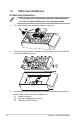 1.3 Sätta ihop bildskärmen Att sätta ihop bildskärmen: • Vid montering av bildskärmens arm/bas rekommenderar vi att du förvarar bildskärmen i dess polystyrenlåda. 1. Ta ut alla tillbehör från polystyrenlådans ovansida. 2. Ta upp polystyrenlådans ovansida från kartongen och tryck sedan så att monteringshålet öppnas. 1 2 3. 1-2 Justera skruvhålet på bildskärmen med den medföljande skruven på armen. Sätt sedan in armen i bildskärmen. 3.1 Installera armen. 3.2 Fäst den medföljande skruven. 3.