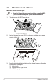 1.3 Monitörün monte edilmesi Monitörü monte etmek için: • Monitör kolunu/tabanını monte ederken, monitörü EPS (Karton kutu) ambalajının içinde tutmanızı öneririz. 1. Tüm aksesuarı üst EPS'den çıkarın. 2. Karton kutudan baş aşağı EPS'yi çıkarın ve ardından açık sehpa montaj deliğini itin. 1 2 3. 1-2 Monitördeki vida deliğini koldaki verilen vidayla hizalayın. Ardından kolu monitöre yerleştirin. 3.1 Kolu takın. 3.2 Birlikte verilen vidayı sıkın. 3.2 VESA kapağını örtün.