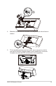 2 1 3 4. Maak de voet aan de arm vast door de meegeleverde schroef aan te draaien. 5. Til de verpakking samen met de monitor op en zorg ervoor dat de voet van de monitor veilig kan staan op een vlakke vloer of bureau. Verwijder ten slotte de EPS en kartonnen doosverpakking.
