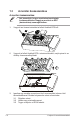 1.3 A monitor összeszerelése A monitor összeszerelése: • Azt javasoljuk, hogy a monitorkar/monitortalp összeszerelésekor hagyja a monitort az EPS (kartondoboz) csomagolásában. 1. Vegye ki az összes tartozékot a felfelé fordított EPS-ből. 2. Vegye ki a felfelé fordított EPS-t a kartondobozból, majd nyissa ki az állvány összeszerelőnyílását. 1 2 3. 1-2 Igazítsa egy vonalba a monitoron lévő csavarnyílást a karon lévő tartozékcsavarral. Ezután helyezze be a kart a monitorba. 3.1 Rögzítse a kart.