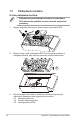 1.3 Podłączanie monitora W celu podłączenia monitora: • Zalecane jest pozostawienie monitora w opakowaniu EPS (kartonowe pudełko) na czas montażu wspornika/ podstawy. 1. Wyjmij wszystkie akcesoria z górnej części opakowania EPS. 2. Wyjmij górną część opakowania EPS z kartonowego pudełka, a następnie naciśnij, aby otworzyć otwór do montażu wspornika. 1 2 3. 1-2 Wyrównaj otwór na śrubę w monitorze ze śrubą dołączoną do wspornika. Następnie wsuń wspornik do monitora. 3.1 Zainstaluj wspornik. 3.