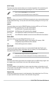 SPD HUB VDDIO (1.0V) Allows you to set the main power for the SPD Hub side-band interface. Default set to 1.0V. Use the <+> or <-> to adjust the value. The values range from 0.900V to 1.200V with an interval of 0.100V. Configuration options: [Auto] [0.90000] - [1.20000] DRAM VDD Voltage Allows you to set the power for the DRAM IC’s VDD portion. Use the <+> or <-> to adjust the value. The values range from 0.800V to 1.435V with an interval of 0.005V. Configuration options: [Auto] [0.80000] - [1.