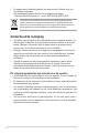 Mededelingen FCC-verklaring (Federal Communications Commission) Dit apparaat voldoet aan Deel 15 van de FCC-regels. Het gebruik is onderhevig aan de volgende twee voorwaarden: • Dit apparaat mag geen schadelijke storing veroorzaken en • Dit apparaat moet elke ontvangen storing aanvaarden, met inbegrip van storing die ongewenste werking kan veroorzaken. Dit apparaat werd getest en voldoet aan de beperkingen voor een digitaal apparaat van Klasse B, in overeenstemming met Deel 15 van de FCC-voorschriften.