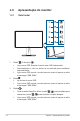 2.1 Ajustar o monitor • Para uma visualização ideal, recomendamos que olhe para o ecrã completo do monitor e depois o ajuste para o ângulo mais confortável para si. • Segure o suporte para impedir que o monitor caia durante o ajuste do ângulo. • O ângulo de ajuste recomendado é de +20˚ a -5˚ (inclinação)/+60˚ a -60˚ (rotação/ +120 mm (ajuste da altura)/90˚ (vista na horizontal). -5° ~ +20° 120mm 60° 0° 60° É normal o monitor abanar ligeiramente enquanto ajusta o ângulo de visualização.