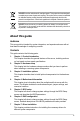 Conventions To ensure that you perform certain tasks properly, take note of the following symbols used throughout this manual. DANGER/WARNING: Information to prevent injury to yourself when trying to complete a task. CAUTION: Information to prevent damage to the components when trying to complete a task. IMPORTANT: Instructions that you MUST follow to complete a task. NOTE: Tips and additional information to help you complete a task.