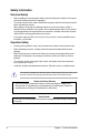 E8047 First Edition V1 September 2013 Copyright © 2013 ASUSTeK COMPUTER INC. All Rights Reserved. No part of this manual, including the products and software described in it, may be reproduced, transmitted, transcribed, stored in a retrieval system, or translated into any language in any form or by any means, except documentation kept by the purchaser for backup purposes, without the express written permission of ASUSTeK COMPUTER INC. (“ASUS”).