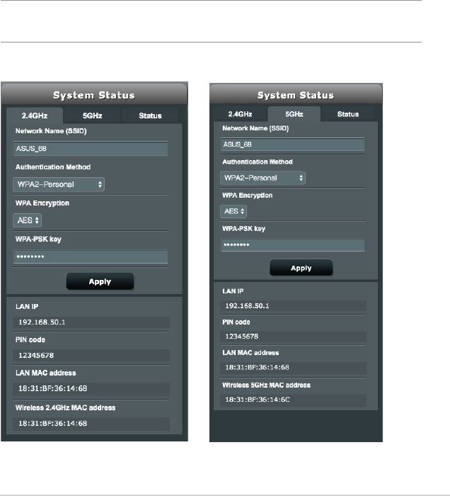 2,4 GHz säkerhetsinställningar 5 GHz säkerhetsinställningar