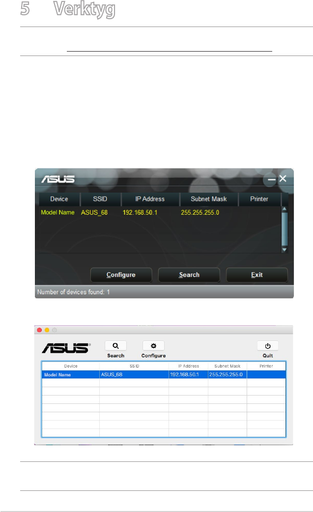 verktyg som identierar en trådlös ASUS-routerenhet, och ger dig