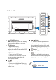 1.3.3 Control Panel POWER button Use this button to turn the display on or put the display to standby. button • Brightness hotkey. • Move the highlight bar up to adjust the selected item while OSD menu is on. MENU button • Turns on the OSD menu. • Exits the OSD menu or go back to the previous menu when the OSD menu is active. button • Speaker volume hotkey. • Move the highlight bar down to adjust the selected item while OSD menu is on. button • Selects a desired preset mode.