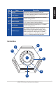 English 4.1.2 Connecting Strix Control Box with external microphone and headphone(Strix Raid DLX/PRO only) 1 Mic In Headphone Out 2 No. 14 Items Description 1. Microphone Input Port Connect your external PC microphone to this 3.5mm jack for voice input. 2. Headphone Output Port Connect your headphones to this port.