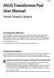 Contents Charging Your Batteries................................................................................... 1 Airplane Precautions........................................................................................ 1 Contents................................................................................................................. 2 Package Contents............................................................................................... 5 Your ASUS Transformer Pad...................