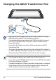 E7360 ASUS Transformer Pad User Manual TF300T/ TF300TG/ TF300TL Charging Your Batteries If you intend to use battery power, be sure to fully charge your battery pack before going on long trips. Remember that the power adapter charges the battery pack as long as it is plugged into the computer and an AC power source. Be aware that it takes much longer to charge the battery pack when the ASUS Transformer Pad is in use. Fully charge the battery up to eight hours for first-time use.