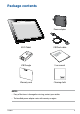 Package contents Power adapter ASUS Tablet USB Dock cable blet S Ta ASU USB Dongle User manual Warranty card Cleaning cloth NOTES: • If any of the items is damaged or missing, contact your retailer. • The bundled power adapter varies with country or region.