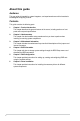 Conventions used in this guide To ensure that you perform certain tasks properly, take note of the following symbols used throughout this manual. DANGER/WARNING: Information to prevent injury to yourself when trying to complete a task. CAUTION: Information to prevent damage to the components when trying to complete a task IMPORTANT: Instructions that you MUST follow to complete a task. . NOTE: Tips and additional information to help you complete a task.