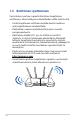 1.3 Langaton reitittimesi Virran LED-valo Off (Pois päältä): Ei virtaa. On (Päällä): Laite on valmis. Flashing slow (Vilkkuu hitaasti): Pelastustila. 2,4 GHz:n LED Pois: Ei 2,4 GHz:n-signaalia. Päällä: Langaton järjestelmä on valmis. Vilkkuu: Lähettää tai vastaanottaa tietoja langattomalla yhteydellä.