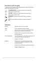 Conventions used in this guide To make sure that you perform certain tasks properly, take note of the following symbols used throughout this manual. DANGER/WARNING: Information to prevent injury to yourself when trying to complete a task. CAUTION: Information to prevent damage to the components when trying to complete a task. IMPORTANT: Instructions that you MUST follow to complete a task. NOTE: Tips and additional information to help you complete a task.