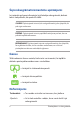 Par šo rokasgrāmatu Šajā rokasgrāmatā sniegta informācija par piezīmjdatora aparatūras un programmatūras funkcijām, kas aprakstītas tālākajās nodaļās. 1. nodaļa. Aparatūras uzstādīšana Šajā nodaļā aprakstīti piezīmjdatora aparatūras komponenti. 2. nodaļa. Piezīmjdatora lietošana Šajā nodaļā aprakstīts, kā lietot dažādas piezīmjdatora daļas. 3. nodaļa. Darbs ar operētājsistēmu Windows® 10 Šajā nodaļā sniegts pārskats par piezīmjdatora operētājsistēmas Windows® 10 lietošanu. 4. nodaļa.