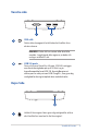 Venstre side VGA-stik Dette stik er beregnet til at tilslutte din VivoMini til en ekstern skærm. BEMÆRK: Dette stik kan variere efter land eller område. I nogle lande eller regioner, er dette stik muligvis et MiniDP-stik. USB 3.0 ports Denne Universal Serial Bus 3.0-port (USB 3.0) muliggør overførselshastigheder på op til 5 Gbit/s og er bagudkompatibel med USB 2.0. Ikonet angiver at denne port er udstyret med USB Charger+, som giver dig mulighed for hurtigt at oplade dine mobilenheder.