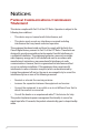 Notices Federal Communications Commission Statement This device complies with Part 15 of the FCC Rules. Operation is subject to the following two conditions: • This device may not cause harmful interference, and • This device must accept any interference received including interference that may cause undesired operation. This equipment has been tested and found to comply with the limits for a Class B digital device, pursuant to Part 15 of the FCC Rules.