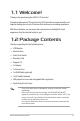 Table of Contents Notices................................................................. iv Safety information.............................................. v Care & Cleaning.................................................vii Takeback Services..........................................viii 1.1 Welcome!................................................... 1-1 1.2 Package Contents................................. 1-1 1.3 Assembling the Monitor Arm/Base... 1-2 1.4 Connect Cables................................