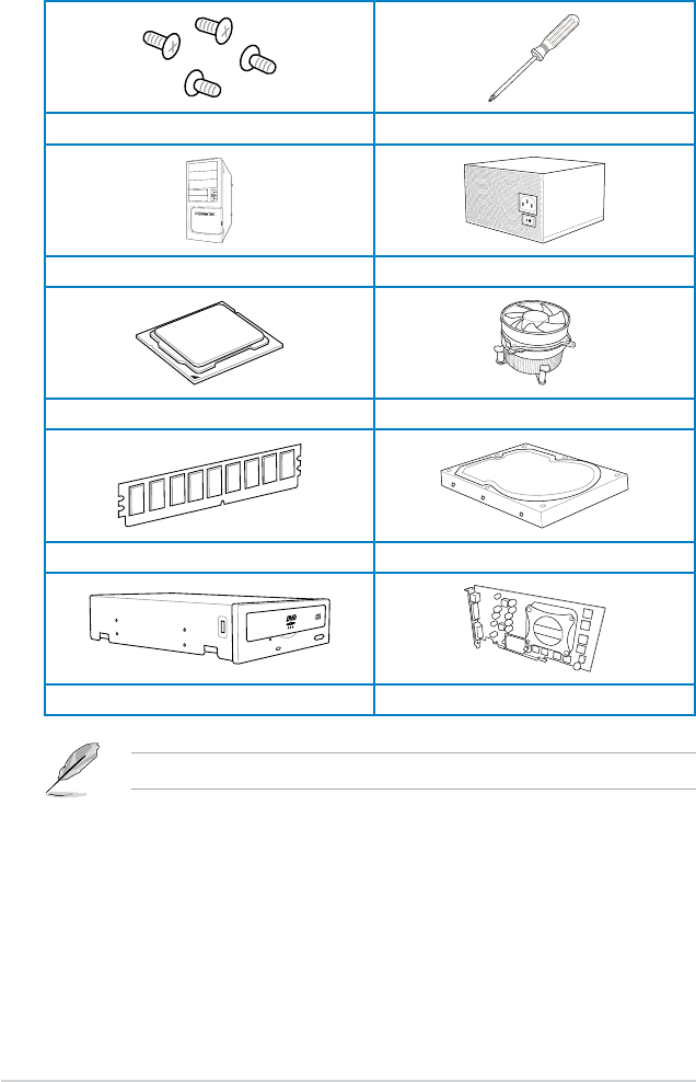 The tools and components in the table above are not included in the motherboard package.