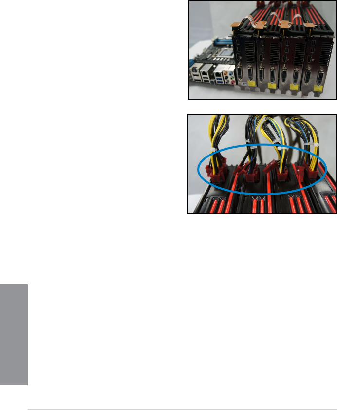 2. Insert the four graphics cards into the PCIEX16 slots. Refer to