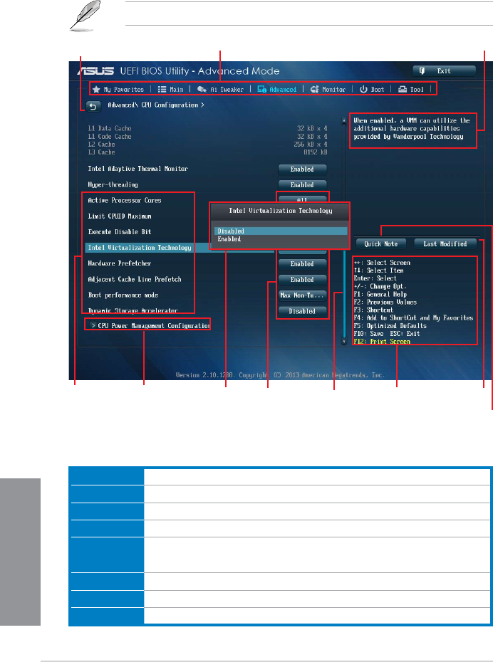 the BIOS settings. The gure below shows an example of the Advanced Mode. Refer to the