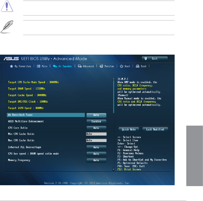 Be cautious when changing the settings of the Ai Tweaker menu items. Incorrect eld