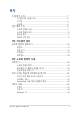 저작권 정보 본 설명서에 기술된 제품과 소프트웨어들은 보완을 목적으로 보관되는 경우를 제외하고는 ASUSTeK COMPUTER INC.(이하 “ASUS”)로부터의 서면 동의 없이 임의의 양식이나 수단을 통해 다른 언어로 번역, 저장매체로 보관, 복사, 전달, 재구성 할 수 없습니다. ASUS는 본 설명서에 대해 그 어떠한 보증도 하지 않으며, 특정 목적을 위한 적합성 또는 제품의 매매 상황, 제품 보증에 관한 함축적 의미 등을 포함한 여타의 보증을 하지 않습니다. 또한 ASUS는 간부, 직원, 그밖의 고용인 및 대리인으로부터의 보증에 관련된, 가접적이거나 특별한 경우 혹은 우연히, 필연적으로 발생하는 손상(수익의 손실, 사업상의 손실, 이용 시 데이터의 손실, 사업상의 장애 또는 이와 비슷한 경우를 포함)에 대해서 그 어떠한 책임도 지지 않습니다. ASUS는 설명서 및 제품에 이러한 결점 및 오류에 의한 피해의 가능성에 대해서 언급하고 있습니다.