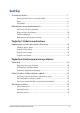 O ovom priručniku Ovaj priručnik pruža informacije o hardverskim i softverskim funkcijama vašeg notebook računara, organizovane kroz sledeća poglavlja: Poglavlje 1: Podešavanje hardvera Ovo poglavlje sadrži detaljne informacije o hardverskim komponentama vašeg notebook računara. Poglavlje 2: Korišćenje prenosnog računara Ovo poglavlje prikazuje kako da koristite različite delove svog notebook računara.