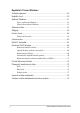 O této příručce Tato příručka poskytuje informace o hardwaru a softwaru notebooku, rozdělené do následujících kapitol: Kapitola 1: Nastavení hardwaru Popisuje hardwarové komponenty notebooku. Kapitola 2: Použití vašeho notebooku Tato kapitola představuje použití jednotlivých částí notebooku. Kapitola 3: Práce s Windows Uvádí přehled, jak používat Windows na notebooku. Kapitola 4: Automatický test při spuštění počítače (POST) Tato kapitola představuje použití nástroje POST ke změně nastavení notebooku.