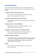 Pogosta vprašanja o strojni opremi 1. Na zaslonu prenosnega računalnika se ob vklopu pojavi črna in včasih rdeča pika. Kaj naj storim? Čeprav se te pike običajno prikažejo na zaslonu, ne vplivajo na vaš sistem. Če se pojav nadaljuje in pozneje vpliva na delovanje sistema, se posvetujte s pooblaščenim servisnim centrom ASUS. 2. Barva in svetlost na zaslonu nista enakomerni. Kako lahko to popravim? Na barvo in svetlost zaslona lahko vplivata kot in trenutni položaj prenosnega računalnika.