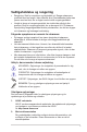 Tilbagetagningstjenester ASUS’s genbrugs- og tilbagetagningsprogrammer skyldes vores forpligtelse til at opfylde de højeste standarder indenfor miljøbeskyttelse. Vores mål er at levere løsninger til vores kunder, så de kan genbruge vores produkter, batterier og andre komponenter såvel som emballagematerialer på en ansvarlig måde. Der henvises til http://csr.asus.com/english/Takeback.htm for yderligere oplysninger om genbrug i de forskellige områder.